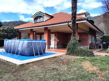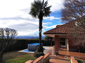 Situata in un contesto signorile denominato 'Residenza i Pini', con vista mozzafiato sul Monviso, la villa è libera su tre lati ed è circondata da un gradevole ed ampio giardino privato. Costruita in paramano negli anni '80 è ideale per chi cerca privacy in un contesto con altre famiglie. Il piano terra ospita una grande e luminosa zona giorno, con salone doppia, la cucina abiatbile ed un bagno di servizio. Una comoda scala interna accompagna alla zona notte, parzialmente mansardata ma con spazi ed altezze estremamente fruibili, costituita da quattro camere da letto, tutte finestrate, ed un bagno padronale con vasca e doccia. L'interrato comprende la tavernetta con camino, circondata da un'efficiente intercapedine, un locale utilizzabile come cucina, lavanderia, cantina e box auto.