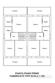 * Piano Primo: tre camere, due bagni, di cui uno privato nella camera padronale, dotata anche di terrazza esclusiva, Le altre due camere affacciano su un balcone comune