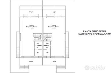 * Piano Terra: soggiorno con cucina open space, bagno, ripostiglio, doppi loggiati.