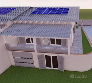Internamente ci saranno infissi in PVC doppio vetro con persiane, riscaldamento a pavimento in grès porcellanato a pompa di calore, fotovoltaico, autoclave con serbatoio di acqua.