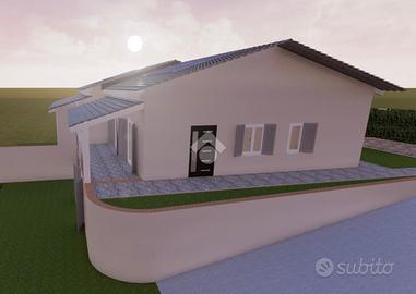 Le due porzioni in vendita saranno così suddivise: ingresso sul soggiorno con angolo cottura, portico, tre camere da letto e due bagni. Questo piano verrà consegnato finito, mentre il piano seminterrato presenta garage, cantina e locale tecnico che verranno consegnati allo stato grezzo. I due piani sono collegati internamente. Si presenterà completamente recintata con ingresso carrabile e pedonale. C'è la possibilità di fare delle modifiche e personalizzare l'immobile a proprio gusto e piacere, rispetto al capitolato presentato.