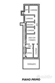 Appartamento al piano primo di 138 mq. composto da soggiorno, cucina abitabile, sala da pranzo, corridoio, tre camere da letto ( una padronale con grande cabina armadio e due doppie ), bagno, balconcino e terrazzo di 40 mq.