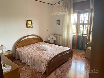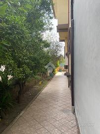 In zona Via Murata nei pressi di Via Calabrese, proponiamo in vendita una porzione di Villa Bifamiliare con ingresso autonomo, garage e area esterna di pertinenza esclusiva. La soluzione al suo interno è composta da: lato giorno al piano rialzato (cucina abitabile con camino, corridoio, bagno con vasca e salone doppio), scala interna che collega il piano rialzato al primo piano, lato notte al primo piano (tre spaziose camere da letto ognuna con finestra, bagno con doccia e balconcino, terrazzo a livello), mentre al piano seminterrato c'è un ampio garage e una cantina, completa la soluzione un'area esterna di pertinenza esclusiva in parte aiuole ed in parte pavimentata.
