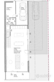Piano terra: Zona giorno da 58mq con portico da 11mq esposto a sud, bagno, antibagno, lavanderia/centrale termica e garage da 18,3mq.