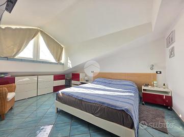Una scala interna porta alla zona notte mansardata, alta e ariosa, dove spicca una camera matrimoniale con finestre panoramiche. Sono presenti altre due camere da letto, seconodo bagno con doccia e un ulteriore ripostiglio.
