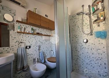 Sempre al piano giorno si trovano un pratico ripostiglio nel sottoscala e un primo bagno con vasca.