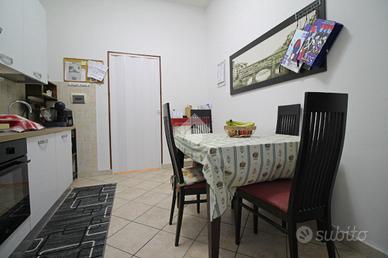Attraversato il disimpegno troviamo una zona notte ampia e luminosa, il primo bagno ed antibagno con aspirazione forzata; di fianco una cucina abitabile dalla quale si ha l'accesso al secondo resede, di circa 50 mq, dove è possibile pranzare/cenare con parenti e amici, ed alla zona lavanderia.