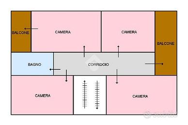 Al piano principale troviamo soggiorno, cucina abitabile, bagno finestrato, due ampie camere matrimoniali una con accesso ad uno dei due balconi, e un comodo ripostiglio.