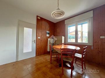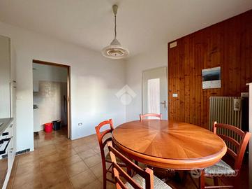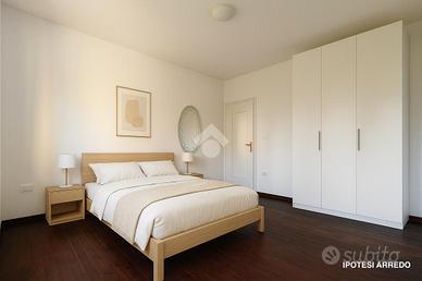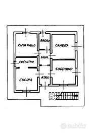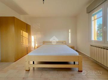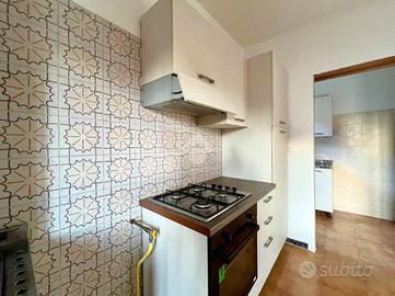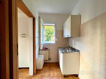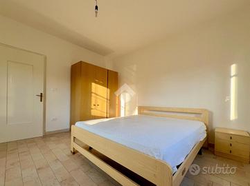 L'abitazione si apre su un comodo ingresso che conduce all'atrio centrale: sulla sinistra si trova la cucina con dedicato cucinino/ripostiglio , mentre sulla destra il soggiorno, attualmente utilizzato come camera matrimoniale. La zona notte, ben separata da un disimpegno per garantire comfort e privacy, comprende una camera matrimoniale, un grande ripostiglio e un bagno finestrato con doccia.