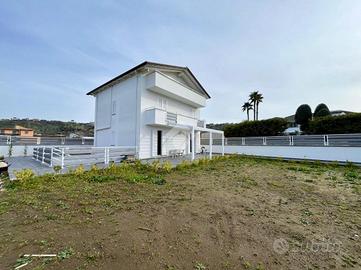Dal maestoso cancello carrabile accediamo in una distesa di giardino di circa 1000 mq di proprietà sulla quale affaccia l'immobile. La soluzione si sviluppa su due livelli ed è così composta: