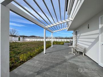 Quarto - InVia Eugenio Montale, una traversa di Via Casalanno, in una zona residenziale e ben collegata proponiamo in vendita con incarico in esclusiva una porzione di villa bifamiliare di nuova costruzione con giardino di proprietà esclusiva. L'immobile è ubicato a circa 1 km a piedi dalla scuola elementare Don Lorenzo Milani e dal Supermercato Decò.