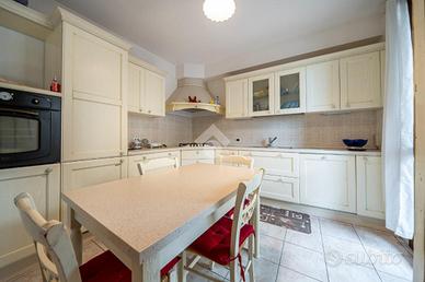 Al primo e secondo piano invece si sviluppa l'abitazione principale, costituita da soggiorno con cucina abitabile, tre camere e due bagni.Completano la proprietà un'autorimessa e il giardino privato.