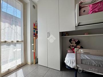 La casa si compone di una comoda zona giorno divisa in salotto e cucina arredata, con uscita retrostante sul porticato esterno. Disimpegno otte con bagno attrezzato di sanitari e doccia, cameretta con portafinestra, molto luminosa e una ampia camera da letto matrimoniale.