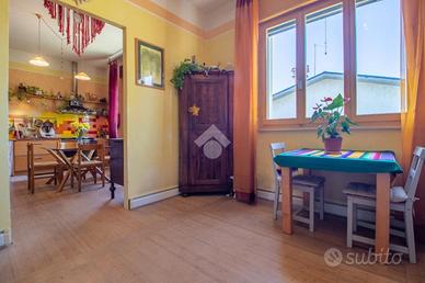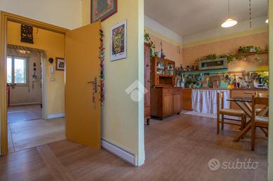 L'accesso avviene attraverso il cortile, salendo le scale si raggiunge il primo piano dove si sviluppa la soluzione.