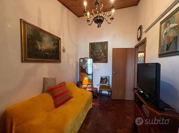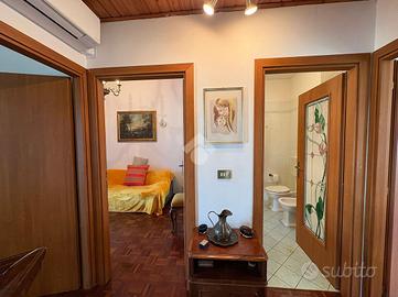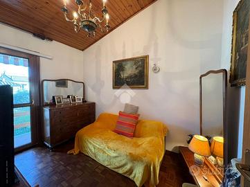 Si accede tramite comodi gradini esterni. Subito dopo l'ingresso si apre un corridoio con armadio contenitivo che conduce direttamente all'ampio e luminoso soggiorno, arricchito da un camino ad angolo che dona calore e atmosfera accogliente.