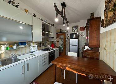 Dal soggiorno si ha accesso diretto al giardino esterno, perfetto per momenti di relax all'aria aperta. Sullo stesso piano si trova la cucina abitabile, con affaccio sulla parte anteriore della casa, e un bagno finestrato con soli sanitari.