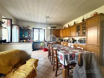 L'immobile presenta al piano terra l'ingresso su soggiorno con cucina a vista, disimpegno, due camere e bagno finestrato dotato di box doccia e vasca. Tramite scala interna si accede alla mansarda al primo piano, recuperabile ai fini abitativi, e al piano semi-interrato composto da box auto doppio, tavernetta e bagno finestrato dotato di box doccia.