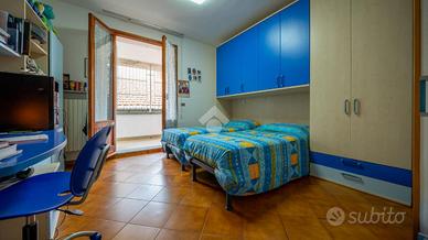 Completano la proprietà due posti auto esterni, facilitando così la gestione degli spazi. Questa soluzione è l'ideale per due nuclei familiari che desiderano vivere vicini, ma con la possibilità di avere i propri spazi privati.