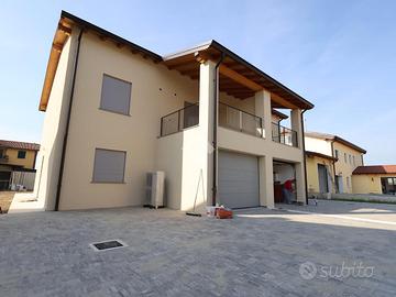 MASSENZATICO Lombardini Invest Srl propone in esclusiva, in posizione semicentrale rispetto all'abitato, ultima villa del secondo stralcio lavori 'Le Ville di Olivia'. - CONSEGNA MARZO 2027; - PAGAMENTI GARANTITI A NORMA DI LEGGE; - ONERI NOTARILI PER PRELIMINARE DI COMPRAVENDITA TRASCRITTO E ROGITO COMPRESO NEL PREZZO. L'intervento è stato studiato per inserirsi in una zona a ridosso della campagna, a tutela sia del paesaggio che della privacy di chi ci abiterà. Sono previsti due fabbricati disallineati tra di loro, di altezza contenuta, armonizzati dalle tinte e finiture esterne, il cui accesso è consentito esclusivamente a chi ci abita. Posti auto, moto e cicli ad uso pubblico sono stati posizionati sul fronte strada. Ogni abitazione è distribuita su due livelli: - al piano terra: area cortiliva privata, parcheggio privato e giardino esclusivo, autorimessa, cantina, zona soggiorno, cucina abitabile, antibagno e bagno con finestra e porticato; - al piano primo: tre camere da letto matrimoniali, terrazza e bagno con finestra. Il capitolato delle opere prevede, oltre al rispetto delle attuali normative in materia antisismica, tutti gli accorgimenti necessari per l'ottenimento della classe energetica 'A4'. L'impianto di riscaldamento prevede pannelli radianti a pavimento in pompa di calore con predisposizione per il raffrescamento. Impianto fotovoltaico da 3 KW. L'idea di base è stata quella di realizzare abitazioni funzionali per famiglie composte da tre a cinque componenti, pratiche nell'utilizzo di tutti i giorni. Avvolgibili delle finestre e porta sezionale coibentata dell'autorimessa motorizzati. Ampia possibilità di personalizzazione interna. Prezzo non trattabile. Contattandoci, risponderemo con cortesia alle vostre domande e potrete richiedere gratuitamente la valutazione del vostro immobile con l'esclusivo sistema TValuta.
