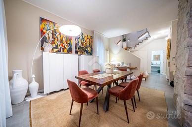 BARAGALLA: Nel cuore di Baragalla, una delle zone residenziali più richieste e apprezzate di Reggio Emilia, STUDIO PEGASO SRL propone in vendita esclusiva una bifamiliare di assoluto pregio, una proposta rara e oggi unica sul mercato immobiliare reggiano. L'abitazione accoglie con un ingresso che conduce a un ampio soggiorno di rappresentanza, impreziosito da un elegante camino con convogliatore di calore e dal raffinato rivestimento in pietra di Brenta, elementi che donano carattere e calore all'ambiente. La cucina abitabile separata, valorizzata da una porta scorrevole in vetro temperato, è affiancata da dispensa, ripostiglio e bagno di servizio, rendendo la zona giorno estremamente funzionale e ben organizzata. Gli spazi interni dialogano armoniosamente con l'esterno, dove si sviluppa un giardino privato curato in ogni dettaglio, ideale per momenti di relax e convivialità. A completare questa zona, una veranda bioclimatica in alluminio di 24 mq, dotata di tendone elettrico, perfetta da vivere in ogni stagione. Salendo al piano primo, collegato da scala interna, si accede alla zona notte, composta da due camere matrimoniali, una delle quali con loggia e bagno en suite, una terza camera con balcone e un ulteriore bagno a servizio del piano. Ambienti luminosi, riservati e pensati per garantire comfort e privacy. Il piano secondo ospita un'ampia mansarda, uno spazio estremamente versatile che può essere trasformato in suite padronale con bagno, mini appartamento indipendente, studio o area relax, adattandosi perfettamente alle esigenze di chi abiterà la casa. Al piano seminterrato trovano spazio una lavanderia con condotto a gravità per lo scarico della biancheria e una cantina di generose dimensioni, oltre a un garage riscaldato e arredato, un dettaglio raro che sottolinea l'elevato livello dell'immobile. Le finiture e le dotazioni confermano il prestigio della proprietà: infissi e scuri in alluminio con doppi vetri, radiatori in acciaio, porte artigianali in