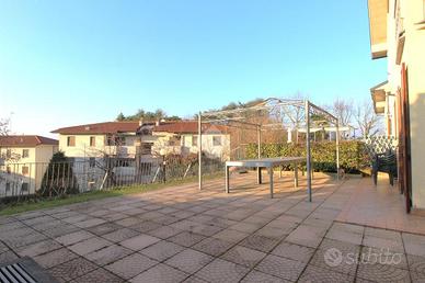 Nel comune di Renate, porzione di villa bifamiliare, ideale per chi cerca spazio e comfort. L'immobile, costruito nel 2002, si distingue per la sua ampia metratura e la disposizione funzionale dei suoi cinque locali. Al piano terra troviamo un ampio giardino pianeggiante con parte pavimentata, che offre uno spazio esterno perfetto per momenti di relax. La zona giorno si apre su un luminoso soggiorno, mentre la cucina abitabile è perfetta per condividere splendidi momenti in famiglia. La proprietà include tre camere da letto, tre bagni, una taverna e una mansarda divisa in 2 stanze finestrate. L'ottima esposizione e la vista panoramica arricchiscono l'unità abitativa. Situata in una zona tranquilla e residenziale, la casa è dotata di impianto di allarme e serramenti in doppio vetro. Le spese comuni sono solo la corrente elettrica del cancello e del corsello dei box.