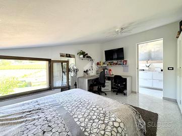 A completare, una curatissima zona barbecue con forno a legna per la pizza, perfetta per organizzare pranzi e cene all'aperto in compagnia di amici e familiari. L'area relax, realizzata con grande attenzione ai dettagli, regala un'atmosfera intima e accogliente, mentre il comodo spazio dedicato al parcheggio garantisce praticità e funzionalità anche per più veicoli.