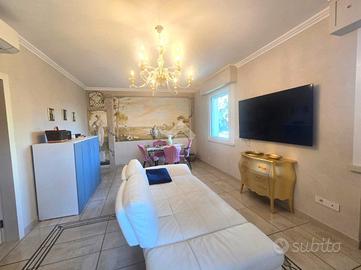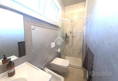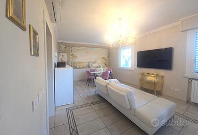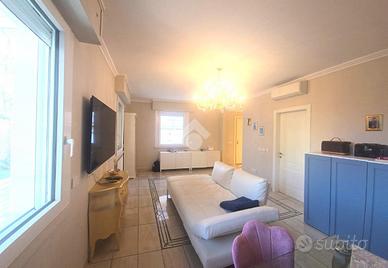VISERBA A pochi passi dal mare, porzione di bifamiliare al piano terra rialzato. L' immobile dispone di ingresso indipendente e di un ampia corte privata. Ingresso, soggiorno spazioso, due camere da letto e doppi servizi. Al piano seminterrato è presente una tavernetta con camino e cucina, perfetta per cene e serate conviviali. Ottime finiture. Posti auto nella corte.