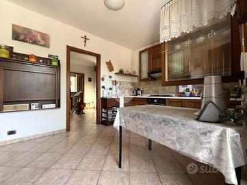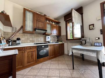 RIVABELLA: in un contesto residenziale tranquillo e ben servito, si propone in vendita un appartamento al piano terra di una bifamiliare, con ingresso indipendente e spazi interni ampi e ben distribuiti, ideale per chi cerca comfort, funzionalità e un'atmosfera accogliente. L'ingresso si apre direttamente su un ampio soggiorno, luminoso e ben proporzionato, impreziosito da un camino a legna che dona carattere all'ambiente e crea un'atmosfera calda e familiare. Adiacente al soggiorno si trova la cucina semi abitabile, separata ma ben collegata, comoda per cucinare in tranquillità pur restando in contatto con la zona giorno. La zona notte è disimpegnata rispetto alla zona giorno e offre una camera matrimoniale spaziosa, una camera singola ben sfruttabile e uno studio finestrato, ideale come ufficio, stanza per gli ospiti o terza camera. Sono presenti due bagni, entrambi finestrati e dotati di box doccia, realizzati con finiture moderne e funzionali. A completare la parte interna una lavanderia molto ampia, pensata per ospitare lavatrice, asciugatrice e tutto il necessario per la gestione quotidiana della casa. All'esterno, l'immobile gode dell'uso di una corte condominiale di circa 300 metri quadrati, condivisa con l'altra unità della bifamiliare. La corte è in parte pavimentata e in parte a verde, ed è attrezzata con comodi posti auto scoperti. Lo spazio esterno, pur condiviso, è ben organizzato e garantisce privacy e praticità. L'appartamento è dotato di riscaldamento autonomo, infissi in doppio vetro e gode di un'ottima esposizione solare. Non sono presenti spese condominiali, ad eccezione di una minima condivisione per la manutenzione della corte e delle parti comuni. Questa soluzione rappresenta la scelta ideale per chi desidera vivere in un ambiente sereno e funzionale, con spazi generosi, indipendenza e aree esterne fruibili, senza rinunciare alla vicinanza ai servizi principali