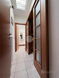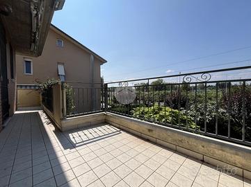 RIVABELLA: situato al primo piano di una elegante bifamiliare, questo appartamento combina spazi ampi, comfort moderno e piacevoli sfoghi esterni, ideali per una vita quotidiana di qualità. L'ingresso introduce in un luminoso soggiorno con camini e cucina a vista, ambiente accogliente e ben organizzato, pensato per il relax e la convivialità. A rendere ancora più speciale questa zona è un terrazzo angolare di circa 20 mq, che avvolge la zona giorno offrendo un prolungamento naturale degli spazi interni, perfetto per pranzi all'aperto, momenti di relax o per godersi il verde circostante. Adiacente alla zona giorno si trova uno studio, ideale come angolo smart working, zona lettura o eventuale terza camera. La zona notte, separata da un comodo disimpegno, ospita una camera doppia e una camera matrimoniale con cabina armadio e bagno privato con vasca. Entrambe le camere da letto godono dell'accesso a un balcone dedicato, che garantisce ulteriore luce naturale e un piacevole sfogo esterno riservato. Completa la zona notte un secondo bagno, pratico e funzionale, a servizio della camera doppia e degli ospiti. Completa la proprietà una corte condominiale di circa 300 mq, ben tenuta e fruibile, dove sono disponibili posti auto riservati, comodi e facilmente accessibili. L'appartamento è curato nei dettagli, con finiture moderne, distribuzione razionale degli spazi e un contesto residenziale tranquillo, perfetto per chi cerca una soluzione abitativa completa e funzionale
