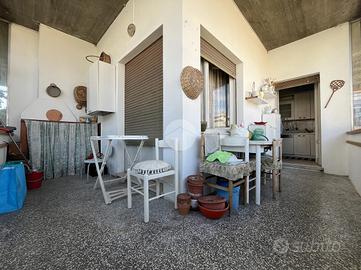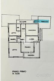 BORGO SAN GIULIANO: l'appartamento si trova al primo piano di una bifamiliare situata a Borgo San Giuliano. L'intero piano è occupato dall'abitazione, con una distribuzione interna ampia e razionale. L'ingresso si apre su un disimpegno centrale che mette in comunicazione la zona giorno e la zona notte. Il soggiorno è spazioso e ben illuminato, con accesso diretto al balcone che si collega, tramite scala esterna, al grande terrazzo. Accanto al soggiorno si trova una cucina separata, abitabile e funzionale, perfettamente collegata alla sala da pranzo. Quest'ultima si affaccia su una veranda coperta, ideale per pranzi all'aperto o momenti di relax. La zona notte è composta da due ampie camere da letto, entrambe vicine al bagno principale, comodo e ben posizionato. È presente anche un ripostiglio, utile come dispensa o locale di servizio. Al piano superiore, collegato internamente, si sviluppa il sottotetto. È suddiviso in più vani, perfetti come soffitte, magazzini o per ricavare uno studio o un locale hobby. Al piano terra si trova un garage di generose dimensioni, con accesso indipendente e collegamento diretto alla scala che conduce all'appartamento. L'immobile offre quindi una soluzione spaziosa, ben articolata e dotata di diversi spazi esterni: balcone, terrazzo e veranda. La posizione nel cuore di Borgo San Giuliano lo rende particolarmente interessante