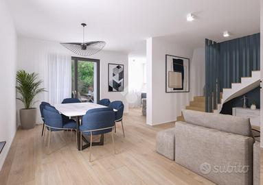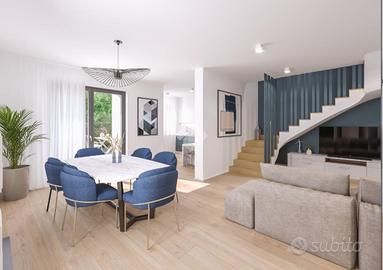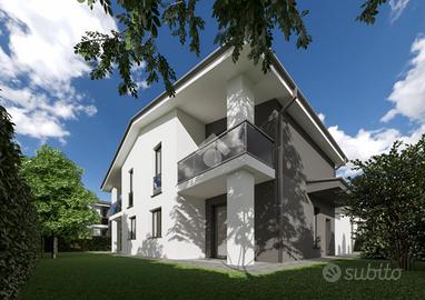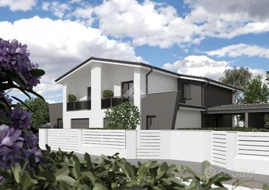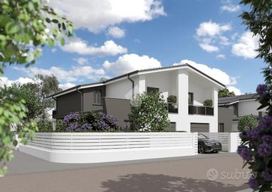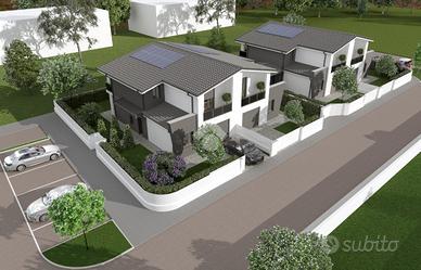 RIO SALICETO: intervento di nuova costruzione alle porte del paese. Eleganti villette abbinate disoposte al piano terra e primo costruite con materiale ISOTEX. Ogni immobile, di costruzione in stile moderno, è composto al piano terra da ingresso su soggiorno di 32 mq, cucina abitabile, accesso al giardino e bagno. Salendo le scale, al primo piano, troviamo la zona notte composta da bagno e 3 camere da letto di cui 2 con terrazzo. Completa l'immobile il garage al piano terra con accesso interno. A caratterizzare la soluzione: il giardino privato su 3 lati, il portico e la vetrata interna. Copertura delle camere realizzata con struttura in travi e travetti in legno lamellare sbiancato con pacchetto di isolamento termico e solaio piano in laterizio con sovrastante pacchetto di isolamento termico. Tapparelle automatizzate, infissi in PVC basso consumo emissivo con zanzariere incorporate, pavimenti e marciapiedi esterni in grés porcellanato. Porta d'ingresso blindata. 3KW di fotovoltaico. Riscaldamento a pavimento con pompa di calore e predisposizione impianto di climatizzazione multisplit. Tecnologie impiantistiche d'avanguardia volte al massimo contenimento del consumo energetico nel pieno rispetto dell'ambiente, predisposte al Sistema di accumulo. Completamente personalizzabile negli spazi interni e finiture. Ulteriori informazioni presso la nostra agenzia.