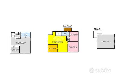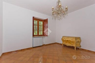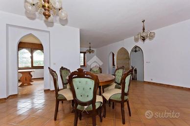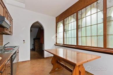 La porzione di bifamiliare, edificata nel 1980, si trova a Riva presso Chieri. La zona, comoda al raggiungimento delle vicine Chieri e Villanova D'Asti, è servita dai mezzi pubblici e si trova nelle vicinanze della piscina comunale. L'immobile si trova in buono stato conservativo sia interno che esterno. Il giardino piantumato è di 670 mq e circonda l'immobile sui tre lati. L'entrata al piano terra, tramite portoncino, si apre sul disimpegno dove vi è un primo ambiente utilizzabile come tavernetta con camino, servita da un primo bagno finestrato con vasca. Al piano terra è presente inoltre l'autorimessa doppia con accesso tramite basculante, collegato tramite porta con l'interno dell'abitazione. La scala interna in legno conduce al primo piano dove sono situati la cucina abitabile separata dal soggiorno entrambi gli ambienti sono luminosi. Le due camere da letto sono di pianta quadrata. Il secondo bagno è finestrato. I serramenti esterni sono tutti in legno con il doppio vetro e dotati di gelosie interne. I pavimenti sono in cotto in tutta l'abitazione. Il riscaldamento è autonomo alimentato da una caldaia a metano attraverso i radiatori.