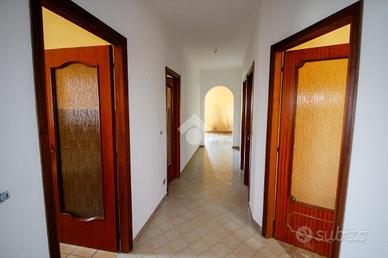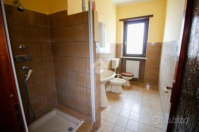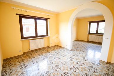 In zona residenziale e tranquilla, precisamente nel 'Villaggio Paradiso', porzione di bifamiliare con ampio giardino privato. Da grazioso vialetto si accede all'ingresso della proprietà che dispone di luminoso soggiorno doppio, cucina abitabile, camera da letto matrimoniale e cameretta. A completare il piano, due bagni finestrati, uno con doccia e uno con vasca. Una comoda scala collega il piano superiore, che si compone di tre locali di sgombero, di cui uno con sfogo su balcone. Nel piano interrato è presente il box auto triplo, l'area lavanderia e la cantina. Gli infissi sono recenti, con doppio vetro, zanzariere e avvolgibili nuovi. Gli attacchi della cucina sono stati rifatti nel 2005, è presente il sistema di allarme cablato su tutte le aperture e ci sono due portoncini d'ingresso, entrambi blindati. L'area esterna gode di ampio giardino privato con frutteti, punto acqua e cisterna per la raccolta dell'acqua piovana. Il riscaldamento è a metano, con termovalvole regolabili per ogni ambiente.