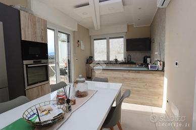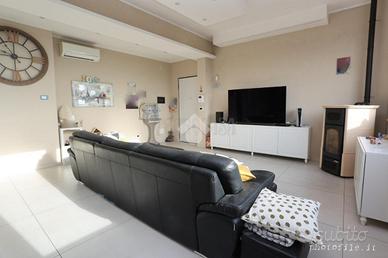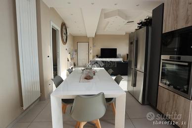 Nel comune di Rivoli, in zona Bruere, circondata da aree verdi, ma comunque comoda a tutti servizi primari come, corso francia, tangenziale e futura metropolitana. Disponibile una porzione di bifamiliare in vendita, perfetta per chi cerca una soluzione semi indipendente. La soluzione, si presenta esternamente in ottime condizioni,sia a livello di tetto che di facciata essendo stata coibentata. L'immobile, di 145 mq, si trova all'ultimo piano e offre spazi ampi e ben distribuiti. Completamente ristrutturata, sia a livello di impianto idrico,elettrico e serramenti elettrici, la casa si compone di quattro locali, tra cui due camere da letto, doppi servizi di cui uno privato in camera matrimoniale, ampia zona living con cucina lineare con penisola ed a completare il piano un terrazzo ideale per momenti di relax all'aperto con vista panoramica sul castello di Rivoli. La presenza di una tavernetta aggiunge un tocco di versatilità, perfetta per ospitare amici o creare uno spazio dedicato al tempo libero. Il giardino privato di circa 1300 mq offre un spazio verde per chi ama la natura. Completano la proprietà un box auto e un posto auto, garantendo comodità e sicurezza. Questa casa signorile è dotata di aria condizionata per il massimo comfort, vi è la presenza di una stufa a pellet collegata a tutti i radiatori garantendo bassi consumi e massima efficenza energetica e privo di spese condominiali. La casa rimane constantemente illuminata grazie alla tripla esposizione al sole e dalla vetrata presente in soggiorno che rende l' immobile luminoso a tutte le ore del giorno. informazioni telefoniche per visite guidate presso l'abitazione