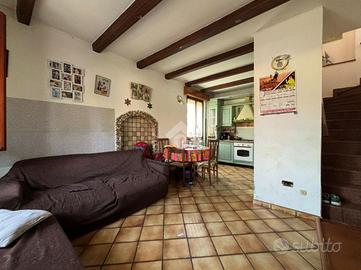L'immobile, di 79 mq, si sviluppa su due livelli. L'ingresso si apre sulla zona giorno, composta da soggiorno open space con angolo cottura e bagno con doccia. La zona notte si trova al piano primo, suddiviso in disimpegno, due camere da letto, ripostiglio e bagno con vasca. La cameretta ha accesso al balcone di 8 mq.