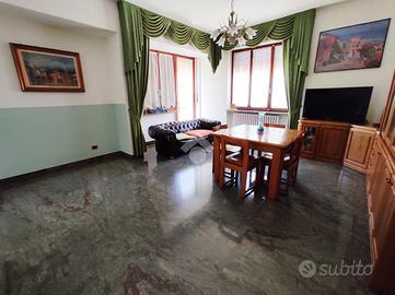 La porzione è di 160 mq totali, posta su un unico livello al piano rialzato e composta da: ingresso su ampio soggiorno collegato alla cucina abitabile e un corridoio in cui si affacciano tre ampie camere da letto e doppi servizi. In osggiorno e in cucina possibilità di installare stufa e/o caminetto grazie alle due canne fumarie.