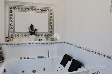 Nella parte alta del Paese in zona tranquilla e residenziale, proponiamo porzione di villa suddivisa in due appartamenti con giardino privato di circa 1200mq. L'immobile si divide internamente di: P. seminterrato ampio garage con annesso magazzino di circa 200Mq; P. Terra, primo appartamento di circa 90Mq composto da: soggiorno con angolo cottura, due ampie camere e due bagni di cui uno con vasca idromassaggio. P. Primo, secondo appartamento su due livelli, sempre di circa 90Mq, composto da soggiorno con angolo cottura con uscita su terrazzo di circa 100Mq, camera matrimoniale e bagno P. mansardato camera da letto e secondo bagno. L'immobile completamente ristrutturato con ottime rifiniture ha la possibilità di due accessi carrabili uno dal garage e uno dal giardino dove si trova un ampia copertura per due posti auto. La struttura in cortina ha portoncino blindato, finestre doppio vetro in legno, persiane in legno e grate in ferro. Ottimo per due nuclei familiari.