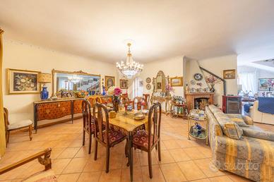 Questa splendida porzione di villa Bifamiliare che potrebbe essere suddivisa tranquillamente in più unità abitive, si trova nella zona di Case Rosse, collegata da ben due svincoli autostradali ed adiacente alla Tiburtina, in un contesto di assoluta residenzialità.