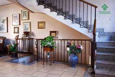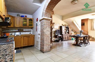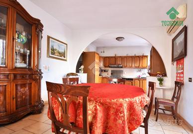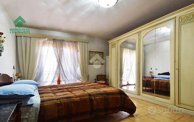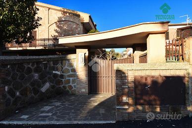 Via Atimeto In contesto residenziale proponiamo la vendita una porzione di Villino Bifamiliare La struttura del villino e la distribuzione degli spazi hanno creato un eccellente armonia tra gli ambienti mantenendo però un impianto tradizionale. Da un ampio giardino terrazzato si accede al piano terra dove troviamo un ampio soggiorno , una cucina molto grande e la zona pranzo con l' uscita su giardino terrazzato, bagno di servizio al piano. Attraverso la scala interna molto comoda possiamo accedere al piano primo , dove troviamo la zona notte composta da due camare matrimoniali, una cameretta e un comodo bagno. Tutto il piano è servito da un' ampia balconata. Al secondo piano troviamo un ulteriore camera da letto matrimoniale con bagno e balcone. Dal piano terra si accede tramite una comoda scala al piano inferiore che ha uanche un ingresso indiepndente dalla rampa dei box. L'ambiente luminoso e finestrato è un'ulter iore zona giorno servita anche da un camino (ampio salone, cucina e bagno). Completa la proprietà un box di 50 mq collegato direttamente al villino.