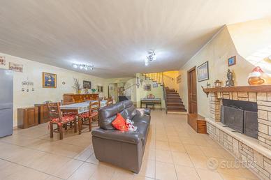 Al piano interrato sbancato si trova uno spazioso locale adibito a sala hobby, dotato di un angolo cottura e di un camino in muratura, creando l'ambiente perfetto per momenti di relax o per organizzare cene con gli amici.