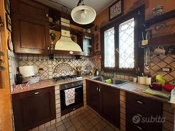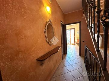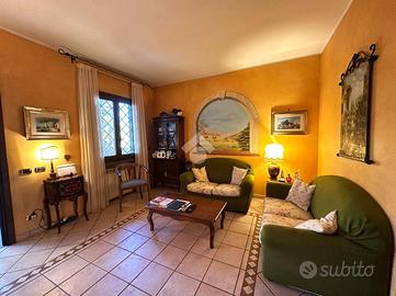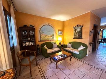Si propone in vendita una porzione di bifamiliare di 140 mq di recente costruzione. Entrando dal giardino pavimentato, tramite alcuni gradini si accende all'immobile, che si apre direttamente sul soggiorno, il cuore della casa, che si collega elegantemente ad una cucina abitabile a vista. Il piano terra è completato da un comodo bagno di servizio. Da quest'ambiente si raggiunge il giardino posteriore intimo, riservato e perfetto per cene/pranzi all'aperto grazie alla presenza del barbecue. Una scala interna conduce al primo piano dedicato alla zona notte. Qui si trovano due camere da letto accoglienti ideali per la famiglia, un bagno patronale finestrato ed un utile ripostiglio. Ogni camera ha l'accesso al balcone perimetrale che abbraccia i due angoli dell'edificio sfruttando al massimo l'esposizione solare con una vista completamente aperta. L'ultimo livello è occupato da una spaziosa mansarda, unico spazio versatile che può essere adibito a studio, area hobby o una terza camera da letto a seconda delle esigenze. La mansarda gode di una buona illuminazione naturale ed offre un rifugio tranquillo e riservato. Una scala interna accede ad un ampio box auto, posto al piano seminterrato. Questo spazio può essere trasformato in un'accogliente sala hobby, taverna o come uno spazio indipendente. La posizione strategica vicina ai servizi ma lontano dal traffico rende l'abitazione una soluzione abitativa ideali per chi cerca serenità senza rinunce.
