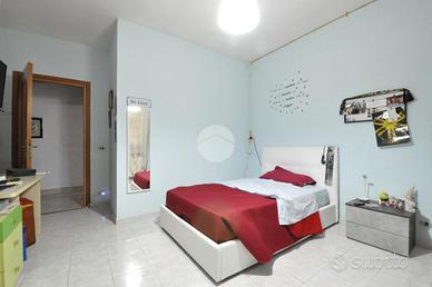 L'abitazione, libera su tre lati, presenta una comoda zona giorno, due camere da letto matrimoniali e due bagni finestrati.