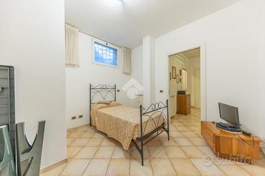 Al piano seminterrato sbancato è presente la zona notte con la camera matrimoniale grande e una camera leggermente piu piccola e un bagno dotato sia di vasca sia di doccia.