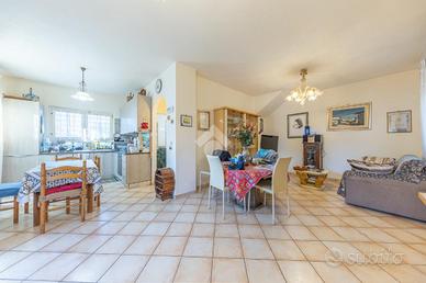 Proponiamo in vendita, in una zona ben servita sia da negozi, supermercati, farmacie, scuole, centri per lo sport e tanto altro, sia da mezzi di collegamento come numerose linee di autobus raggiungibili a piedi, a 5 minuti dalla Cristoforo Colombo e a pochi passi dal mare, una porzione di Bifamiliare di 110 mq su tre livelli così composta: