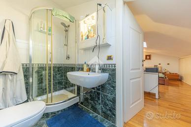 Al piano mansardato troviamo una grande camera matrimoniale con bagno finestrato con doccia.