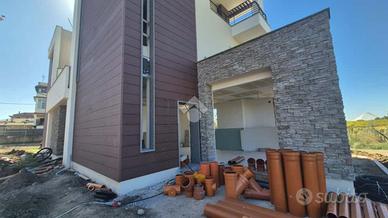 La villa si sviluppa su tre livelli (NON MANSARDATI) e si compone di un ampio salone, cucina abitabile separata, tre bagni finestrati, tre camere da letto, tre spaziosi terrazzi e un comodo portico al piano terra. Completa la proprietà un giardino privato di 150 mq circa con accesso carrabile e posto auto interno.