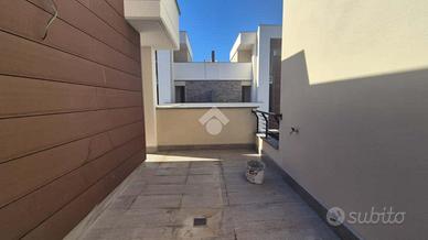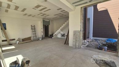La villa si sviluppa su due livelli (NON MANSARDATI) e si compone di un ampio salone con angolo cottura, tre bagni finestrati, tre camere da letto, ampio terrazzo perimetrale e un comodo portico al piano terra. Completa la proprietà un giardino privato di 135 mq circa con accesso carrabile e posto auto interno.