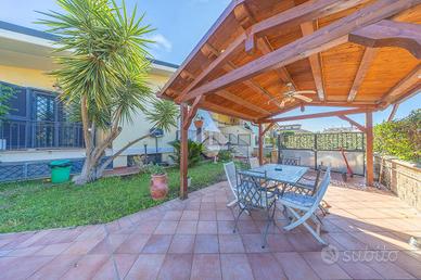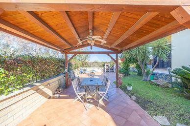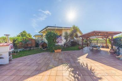 L'ingresso, servito da passo carrabile, consente di parcheggiare comodamente le autovetture all'interno della proprietà. A circondare la casa troviamo un ampio giardino, ben suddiviso tra area verde e zona pavimentata, arricchito dalla presenza di un gazebo, perfetto per momenti di relax e convivialità.