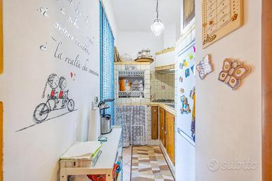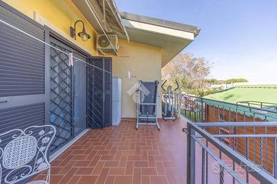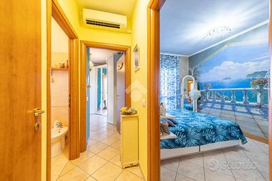 Al piano principale, superata la porta blindata d'ingresso, ci accoglie un luminoso salone con cucinotto in muratura separato. Un corridoio distribuisce gli ambienti della zona notte composta da una cameretta, un bagno finestrato, e una camera matrimoniale con cabina armadio e accesso diretto al terrazzino privato.