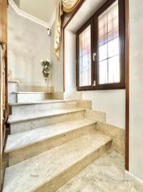 L'immobile si sviluppa su tre livelli e presenta una distribuzione degli ambienti funzionale e ben organizzata. All'ingresso troviamo un ampio salone, una cucina abitabile con camino ed il bagno, ai piani superiori quattro camere da letto e due bagni. Soluzione perfetta per nuclei familiari numerosi o per chi desidera ambienti versatili.